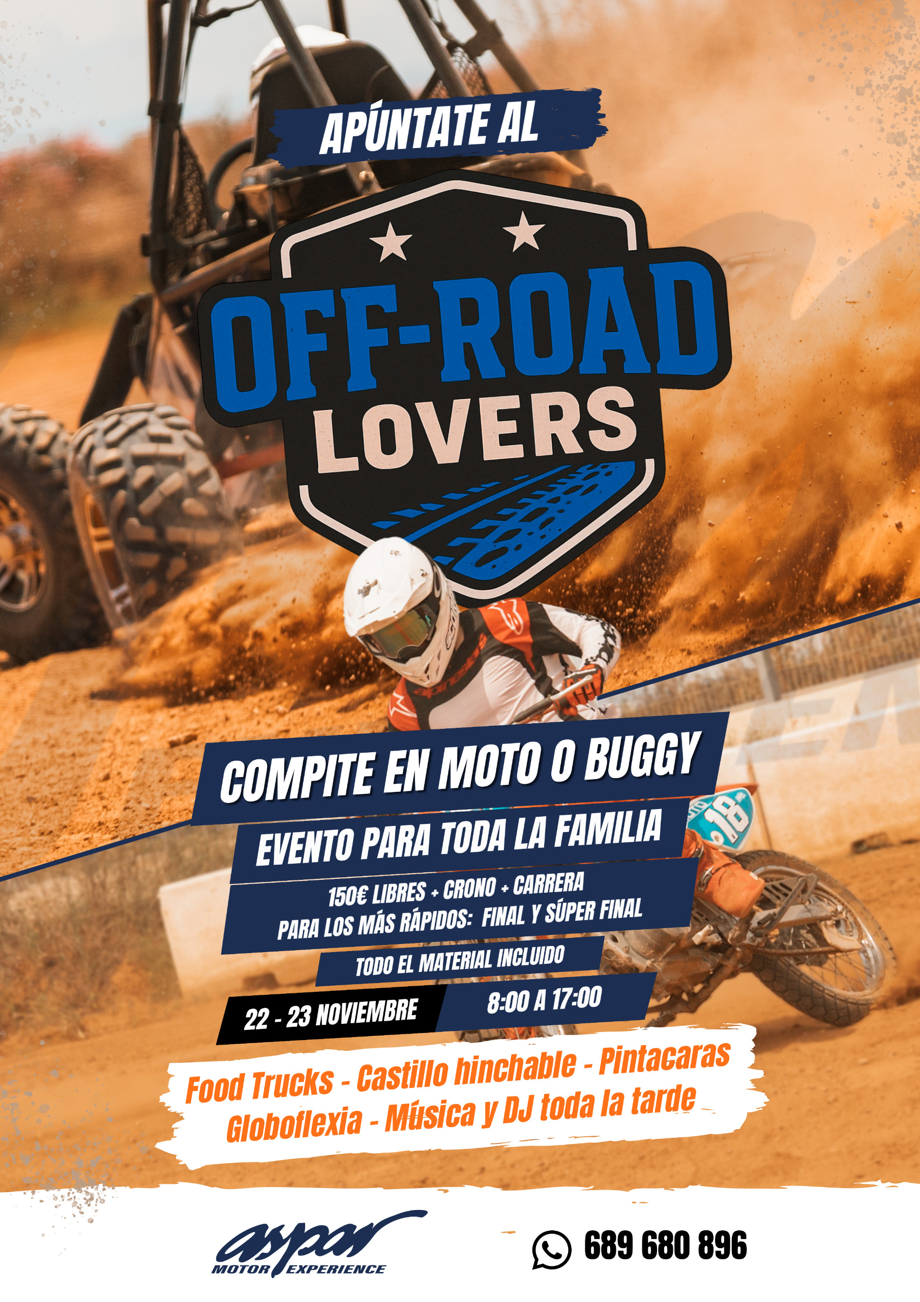 El evento OFF-ROAD LOVERS va dirigido a todos los amantes del Off-Road de 2 o 4 ruedas que quieren disfrutar de la competición en el mejor entorno para ello, el Aspar Circuit.