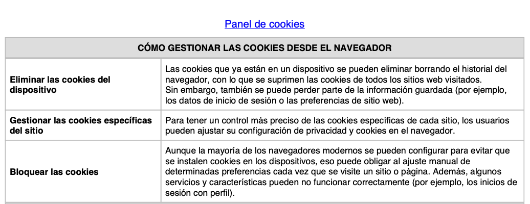 Desde este panel podrá configurar las cookies que el sitio web puede instalar en su navegador, excepto las cookies técnicas o funcionales que son necesarias para la navegación y la utilización de las diferentes opciones o servicios que se ofrecen.